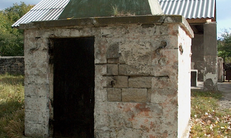 - Окружено разрушенным каменным забором.
